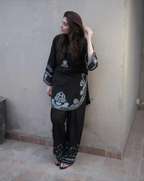Lawn trouser embroidered